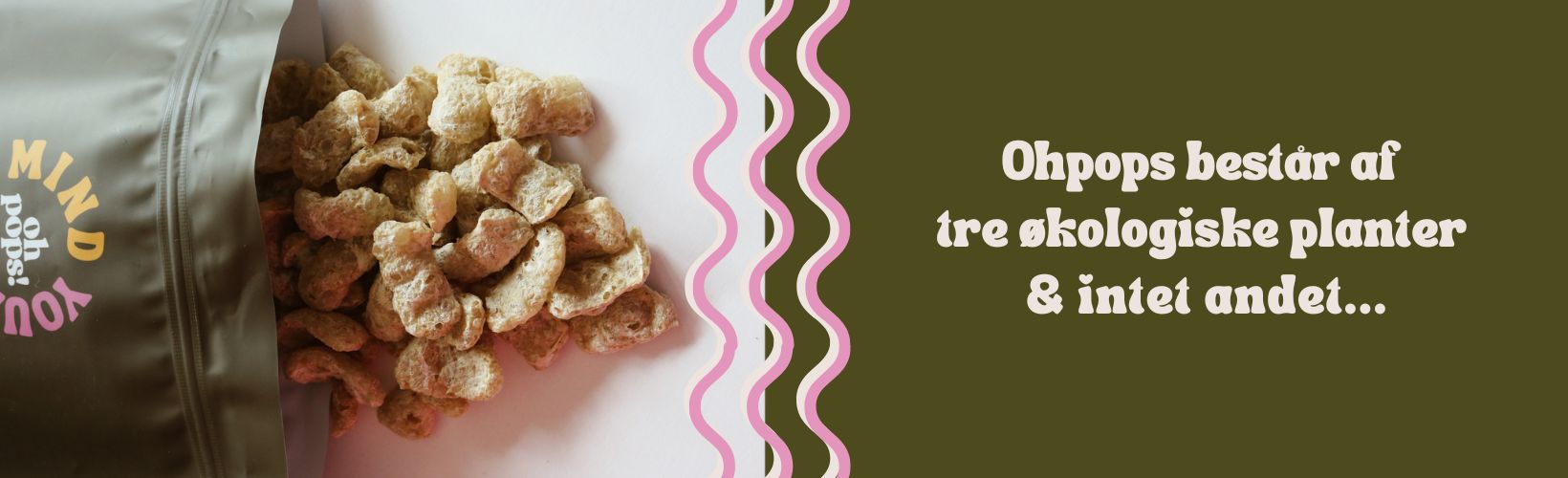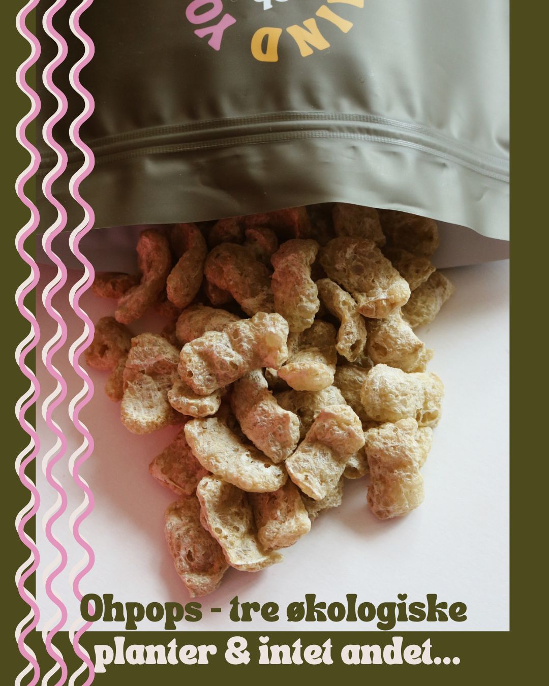 Ohpops består af tre økologiske råvarer: fuldkornshavremel, ærteprotein og hampeprotein, der indeholder proteiner, komplekse kulhydrater, sunde fedtsyrer, plantefibre, vitaminer og mineraler. Hver for sig er de ingredienser, der skaber gode betingelser for, at tarmen fungerer. Tilsammen er de endnu stærkere - de hjælper nemlig hinanden og booster alle de livsvigtige processer, der foregår i tarmen.